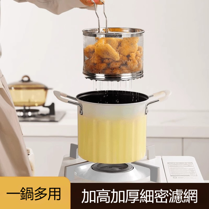 【多功能油炸壺】加高鍋身+不鏽鋼濾籃設計✅油炸不噴濺✅瀝油超順手✅秒變小煮鍋、燉湯鍋, 從炸雞、蔬菜到火鍋湯品,一鍋承包全家美味需求✨