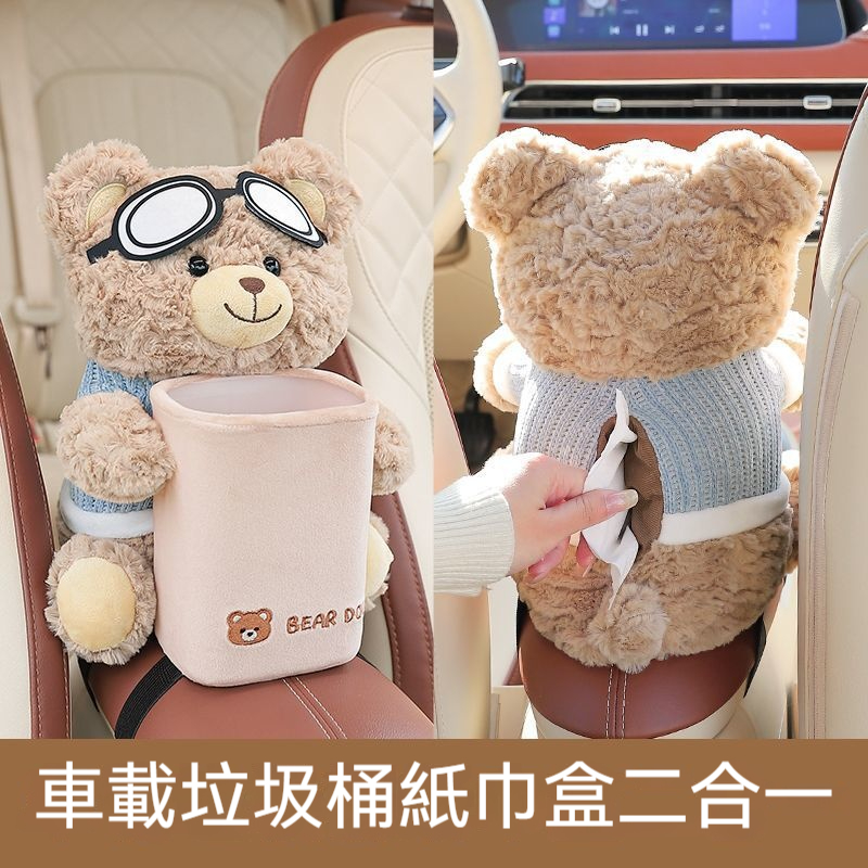 【車載二合一收納桶】垃圾桶+紙巾盒二合一,毛絨外殼+防水PP內膽 ,萌翻天的造型陪伴每段旅程,讓車內整潔度爆表!✨