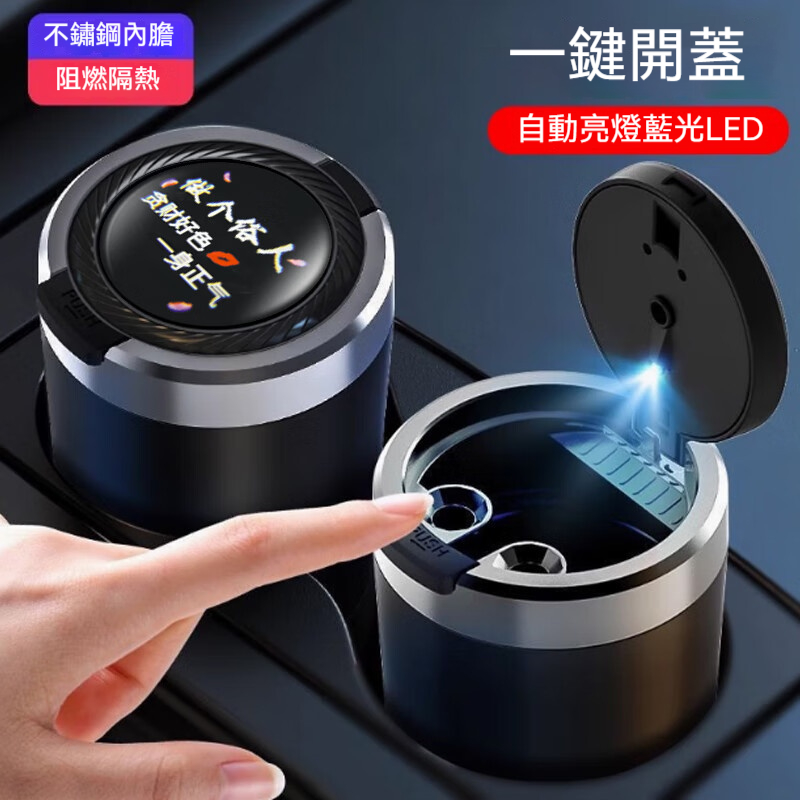 ✨LED車載煙灰缸✨一鍵開蓋亮燈✅密封阻燃✅不鏽鋼內膽✅分離式好清洗,車內空氣攏清新~✨
