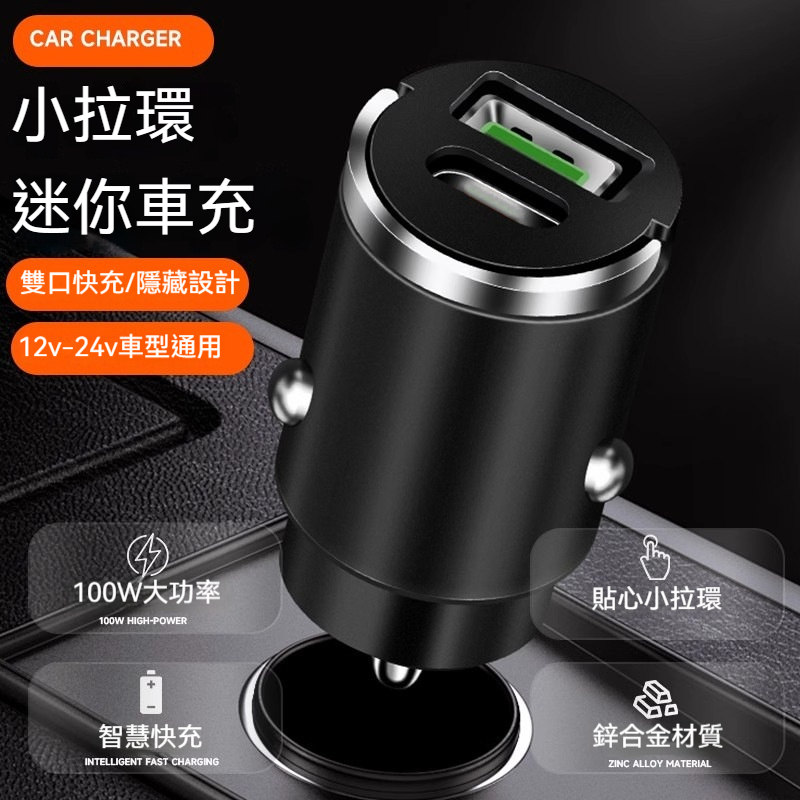 【小拉環迷你車充】 來了!100W大功率超級快充、隱藏式接口不佔空間、兩側加固彈片顛簸不掉, 讓您的愛車充電體驗,從此乾淨俐落、穩定高效!⚡✨