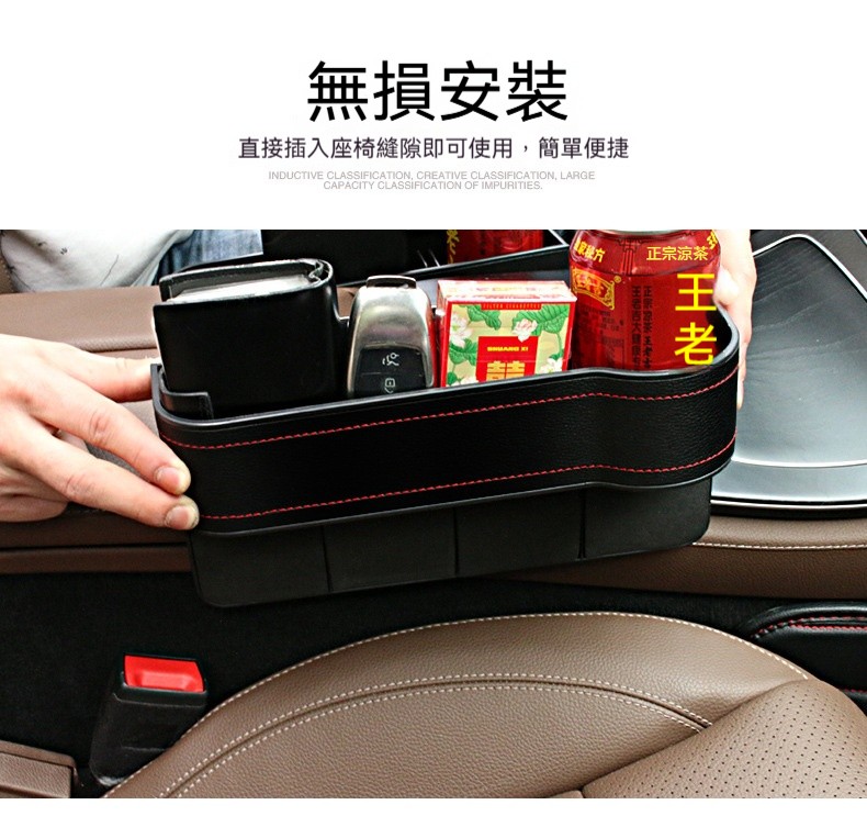【座椅縫隙收納盒】日式設計座椅縫隙收納盒|真皮紋理|三分區收納|底部穿線孔✅ 無損安裝✅ 智慧分區✅ 實用細節✅ 質感材質✅ 通用車型✨