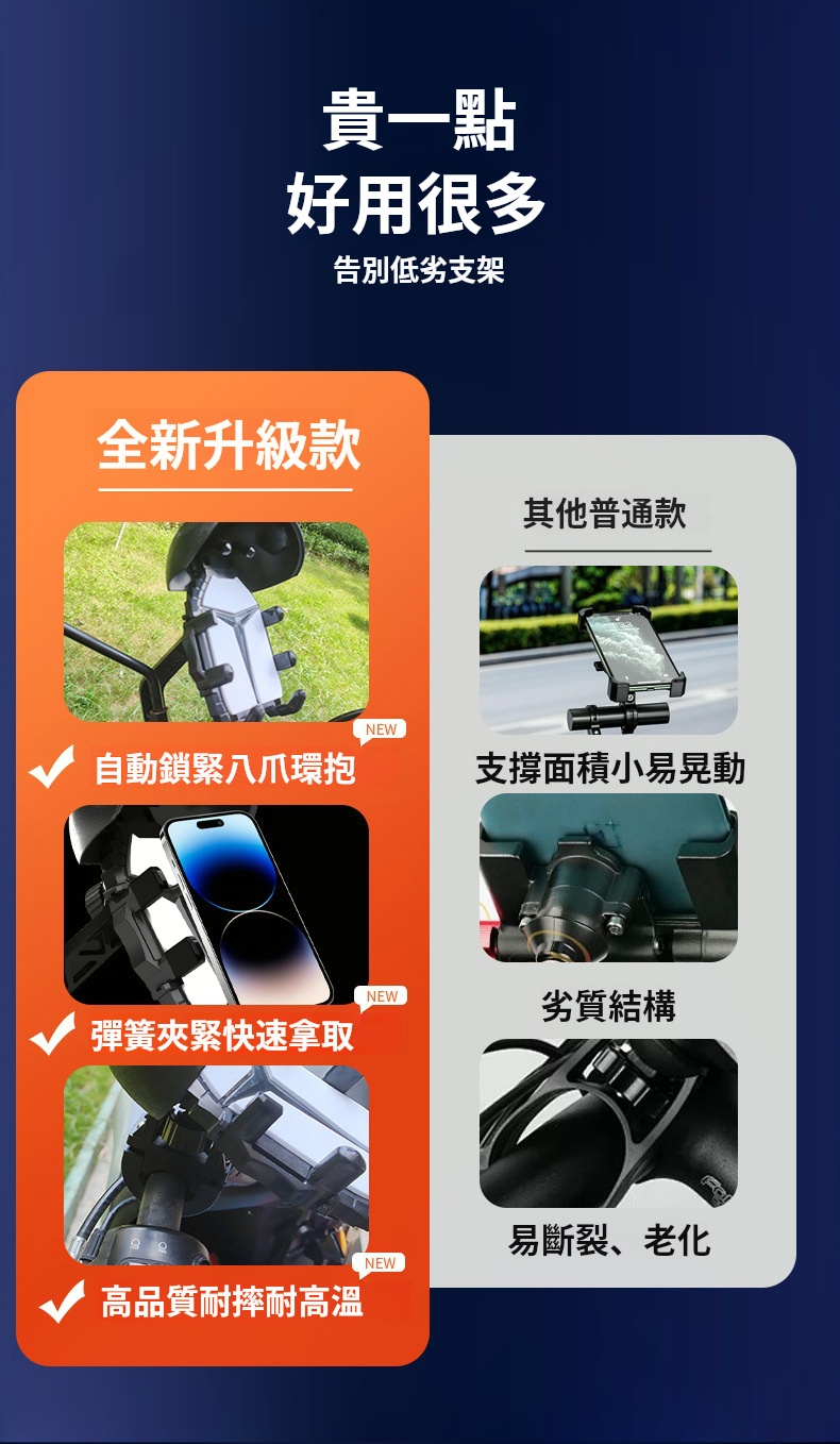 【八爪防震手機支架】狂甩不掉・自帶遮陽擋雨・橫豎雙屏快取|適用於多種車型✨(自動鎖緊・耐熱抗摔)