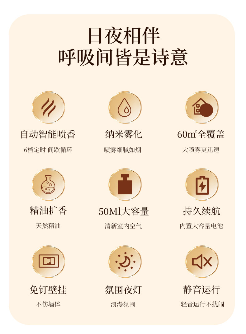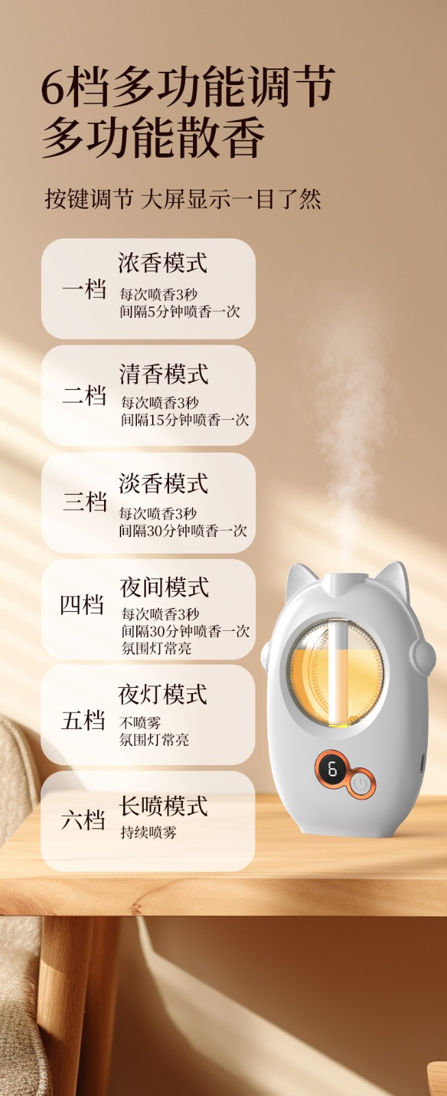 【智能香薰噴霧機】結合納米霧化+七彩柔光+智能定時, 可壁掛、可桌放,6檔香氛濃度自由調, 無聲噴霧伴你入眠,讓每一口呼吸都宛如漫步花園~✨