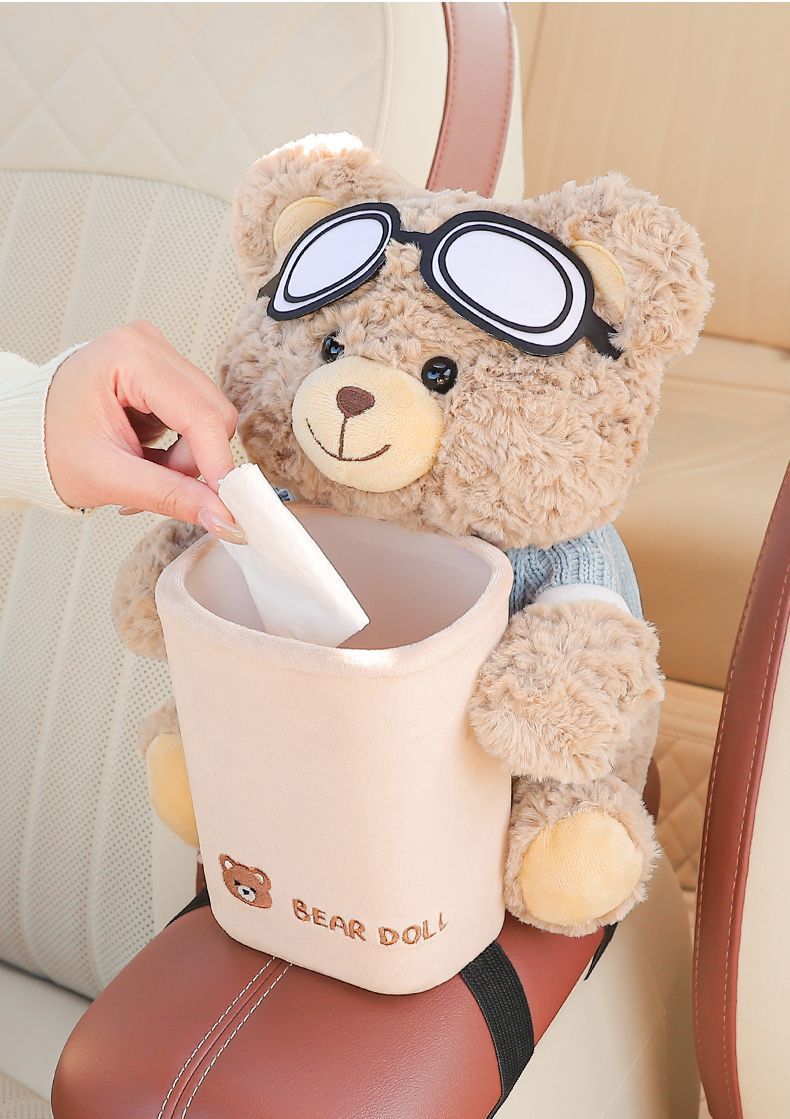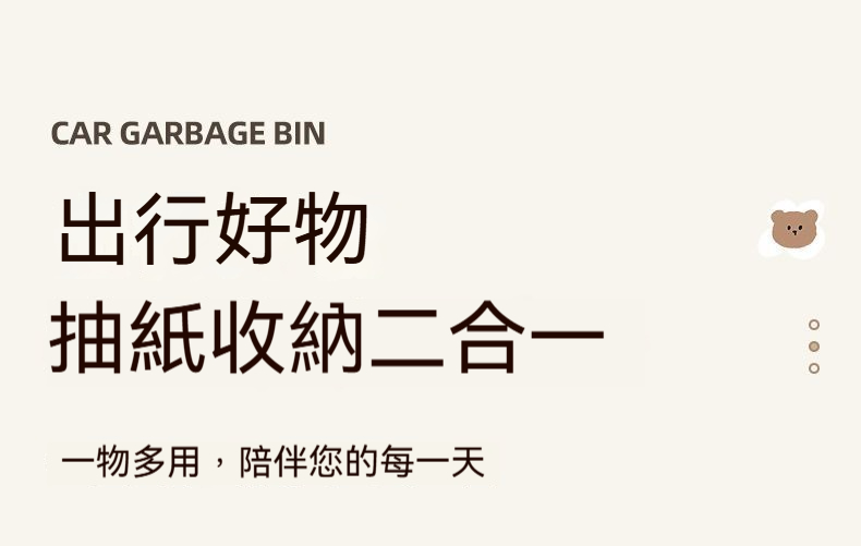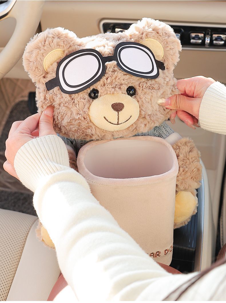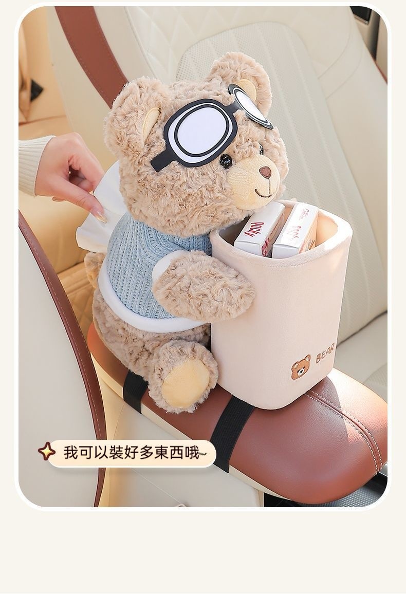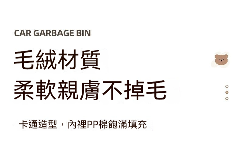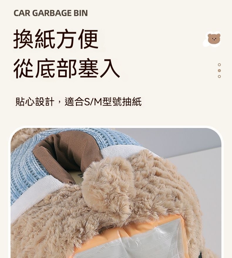 【車載二合一收納桶】垃圾桶+紙巾盒二合一,毛絨外殼+防水PP內膽 ,萌翻天的造型陪伴每段旅程,讓車內整潔度爆表!✨