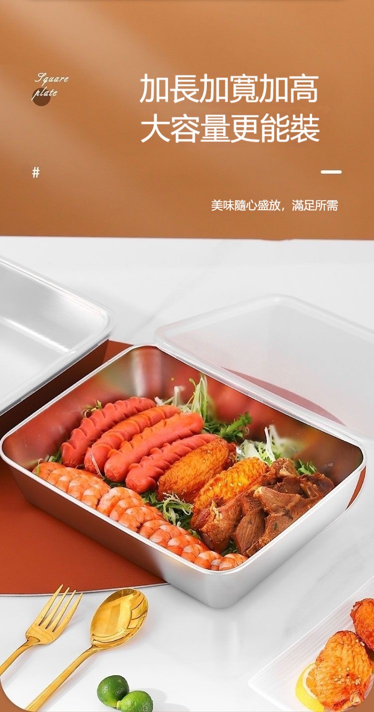 【不鏽鋼多功能長方盤】加厚304鋼材+電解拋光工藝, 表面細膩抗污、圓潤卷邊防割手,可直接微波加熱,從備菜、烘焙到盛盤上桌,一盤貫穿所有烹飪環節!✨