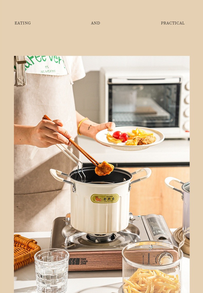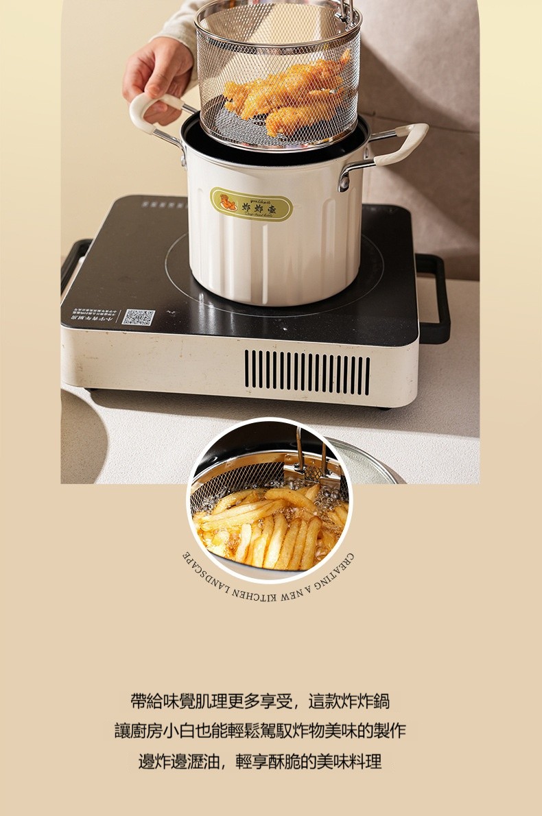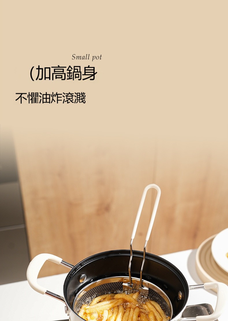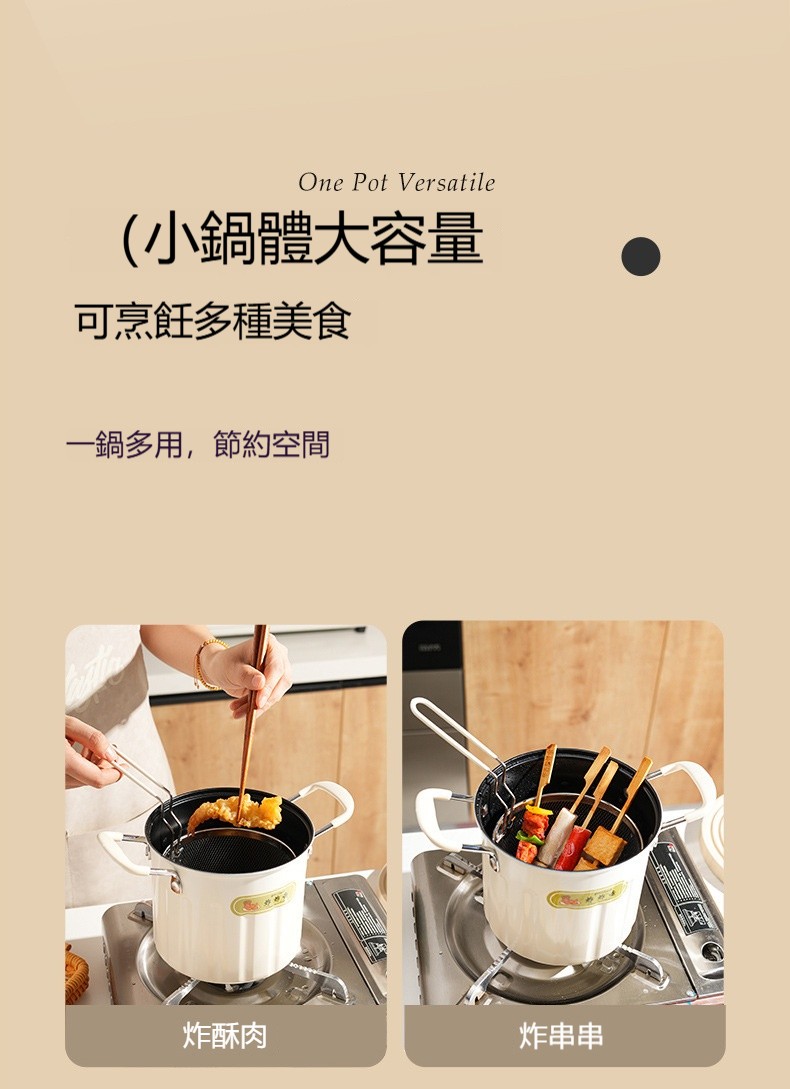 【多功能油炸壺】加高鍋身+不鏽鋼濾籃設計✅油炸不噴濺✅瀝油超順手✅秒變小煮鍋、燉湯鍋, 從炸雞、蔬菜到火鍋湯品,一鍋承包全家美味需求✨