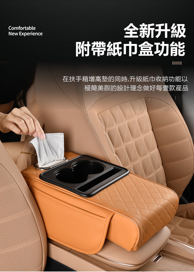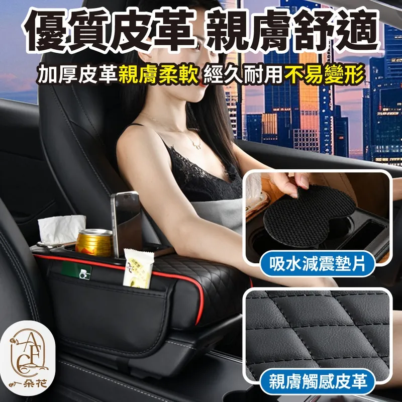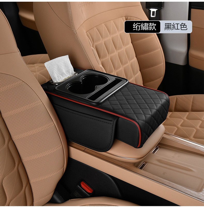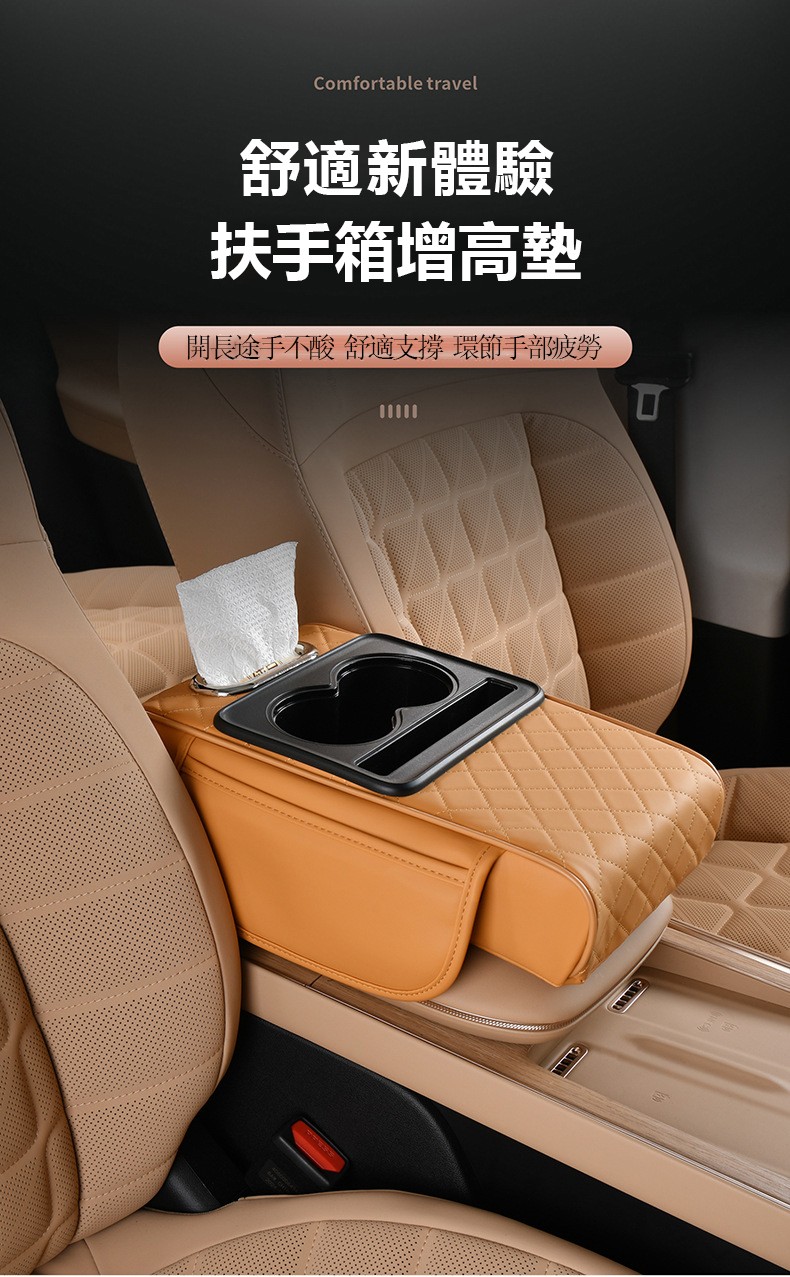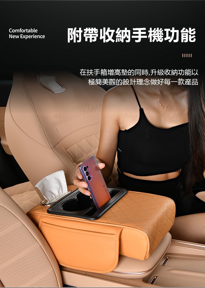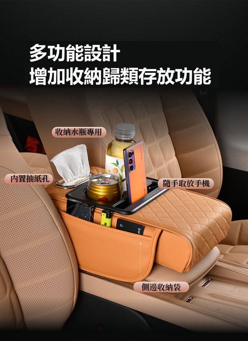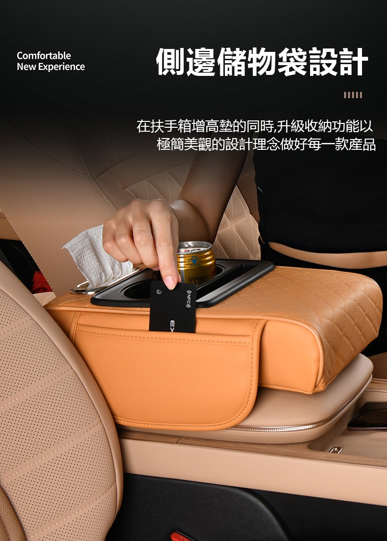 【多功能汽車扶手箱】平時行車,手肘無處安放? 四合一增高墊,解決您的所有煩惱! 升級材質,耐用更舒適 , 多功能設計,手機、水杯一應俱全 ,簡潔美觀,提升駕駛樂趣